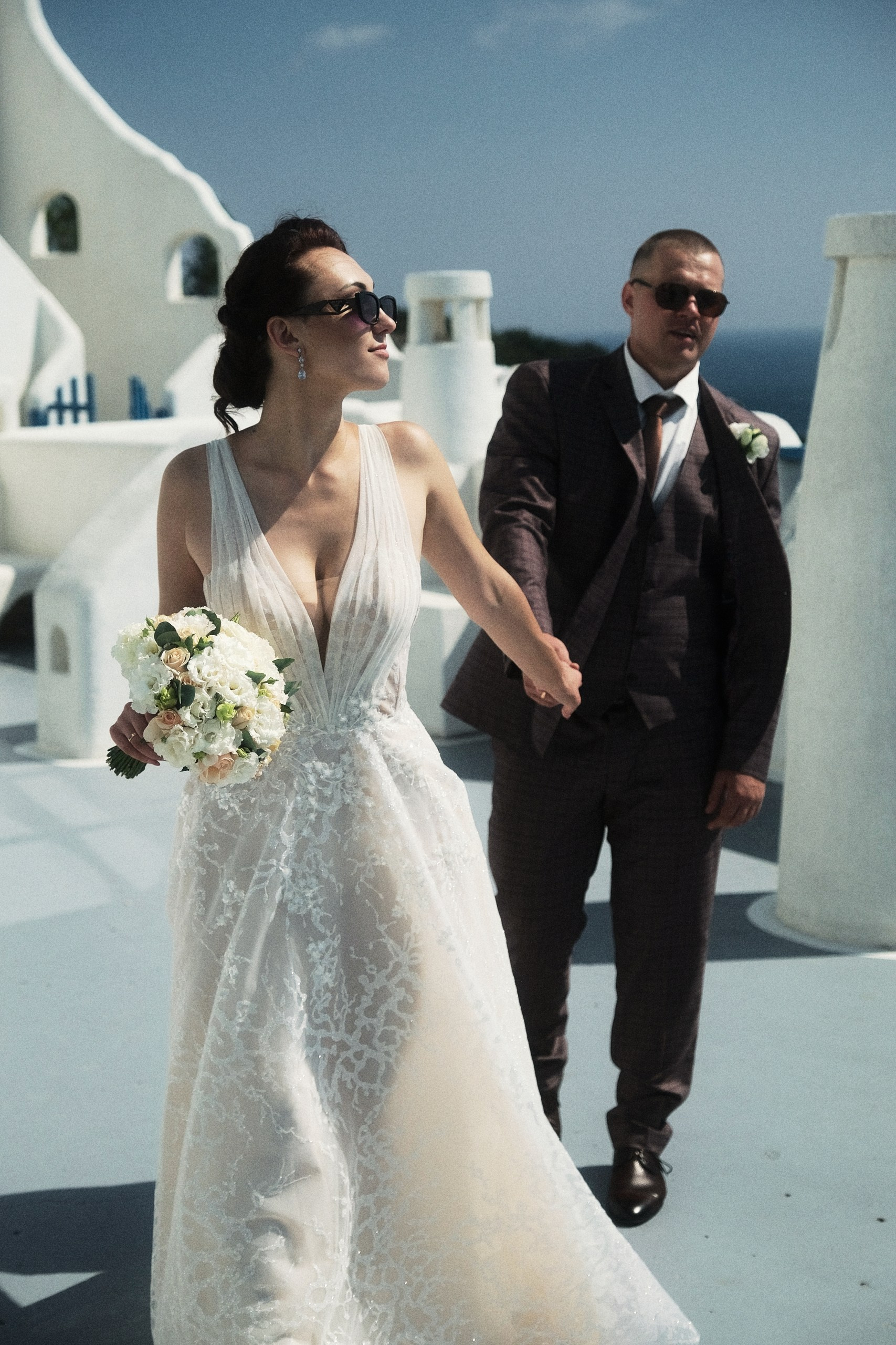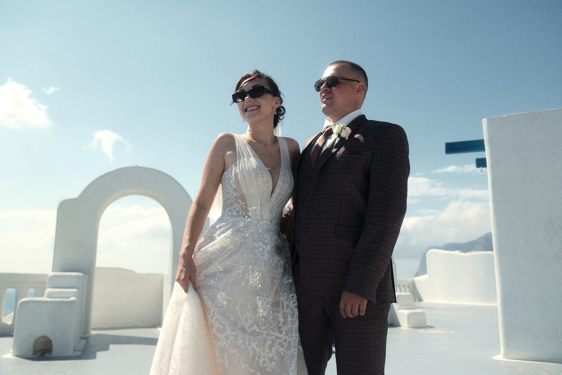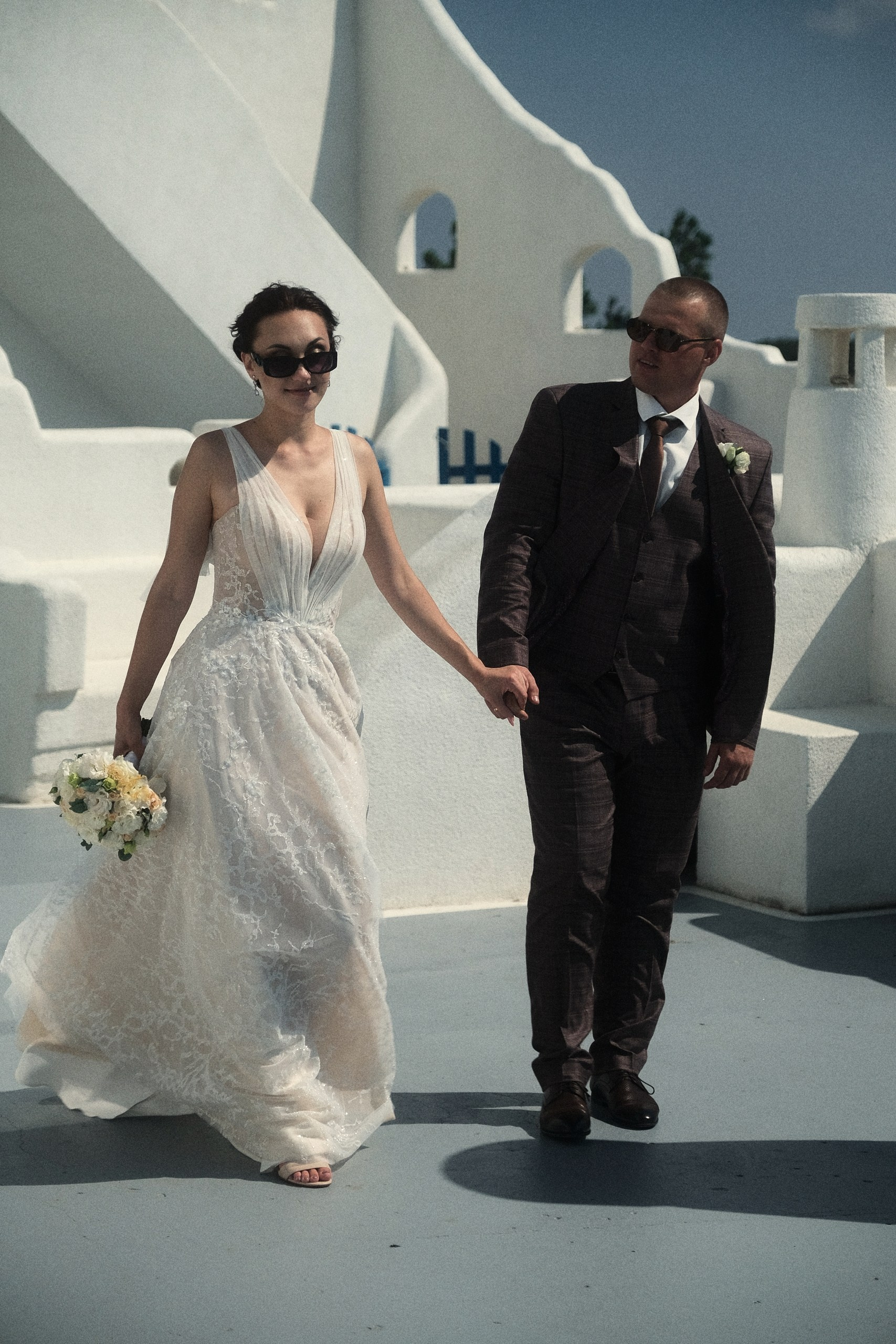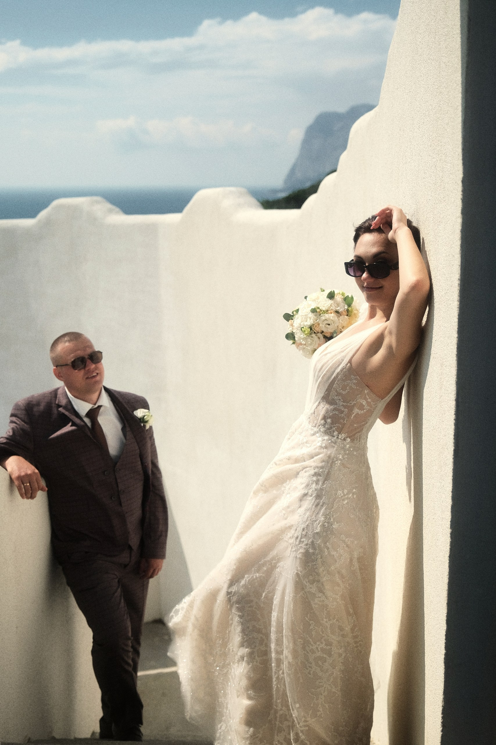 Очень светлая локация, результат съемки смотрится дорого, вкусно и эстетично благодарю белоснежному офорлению фасадов, голубым деталям экстерьера в стиле греческого Санторини и шикарному виду на море. Наиболее эффектные кадры получаются конечно же на закате, но и при сильном полуденном солнце тоже. Зависнуть в процессе съемки моно минимум на час. Так же данная локация подходит и для проведения выездных церемоний в любое время дня.
